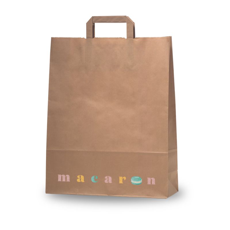 Shopper in carta con manici a piattina realizzabili in carta bianca, avana o colorata. Disponibili in numerosi formati, anche con soffietti ampi adatti al settore food. Personalizzabili nella stampa, con maniglie a piattina colorate, anche a contrasto con la shopper. Possibile plastificazione opaca o lucida e applicazione di manici in cotone. Disponibili anche in carta riciclata!