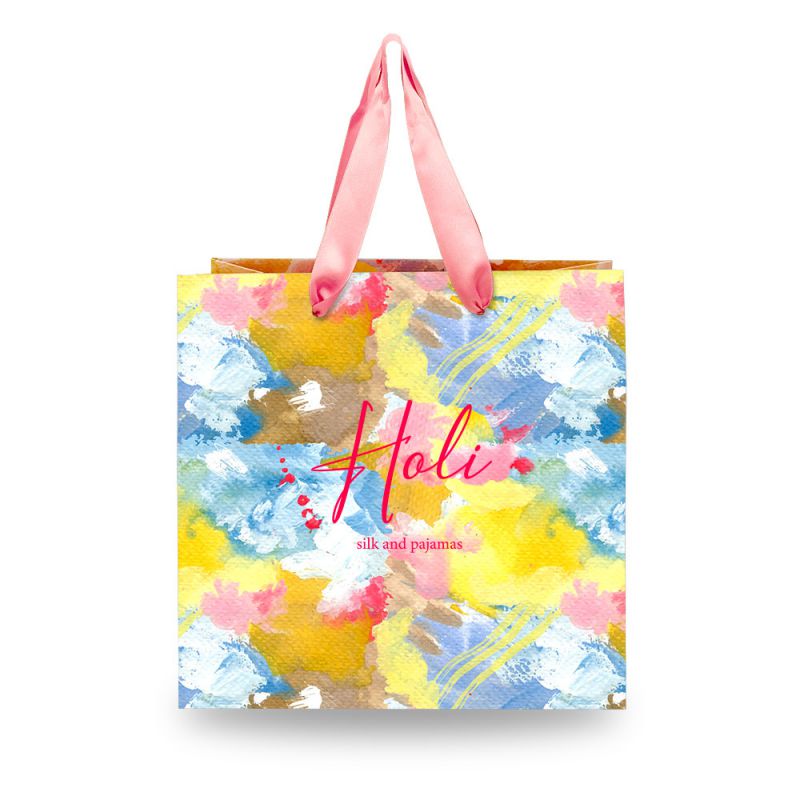 Shopper in carta con manici in raso annodato, disponibile in diversi colori e altezze. Realizzabili in carta di diverse grammature e goffrature, plastificata opaca oppure lucida. Massima personalizzazione attraverso stampe offset, a caldo, serigrafiche, o a rilievo. Risvolti interni e rinforzo di fondo personalizzabili. Manici annodati o affogati nei risvolti.