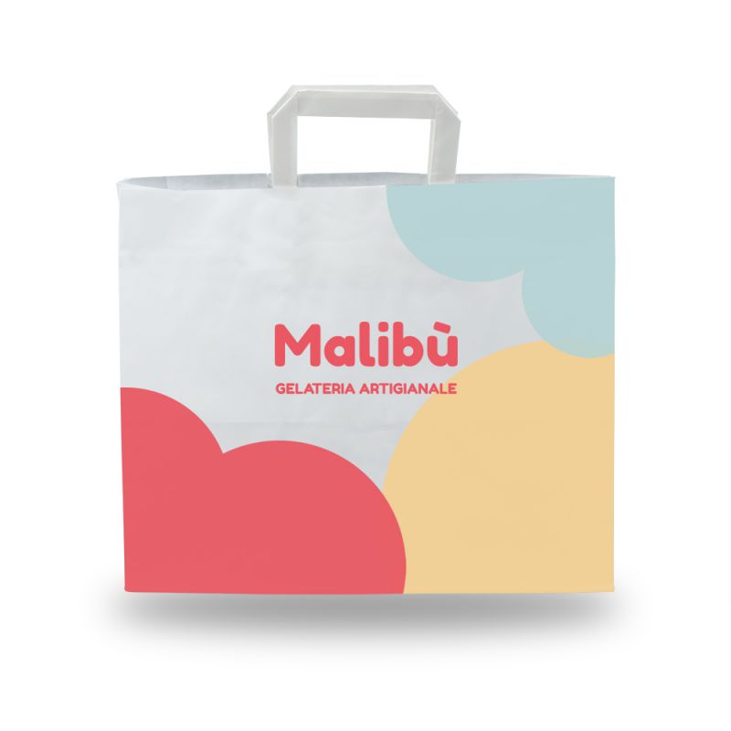 Shopper in carta formati food e take away con manici in cordino ritorto o a piattina realizzabili in carta bianca, avana o colorata. Disponibili in numerosi formati, con soffietti ampi adatti ai delivery e a settori food quali pasticcerie e gelaterie. Personalizzabili nella stampa, con cordini ritorti colorati, anche a contrasto con la shopper. Disponibili anche in carta riciclata!